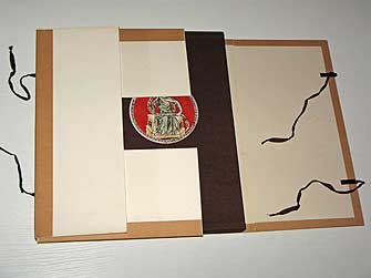 Leinen bezogener Pappschuber mit aufgeklebter farbiger